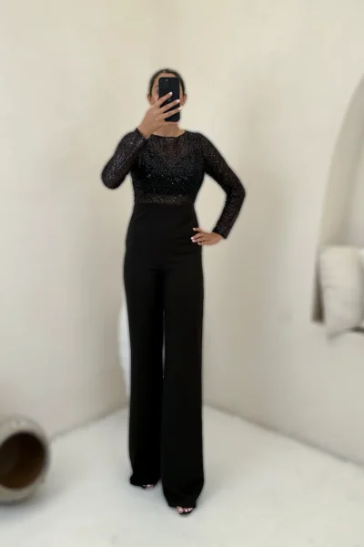 ست مجلسی لباس سرهمی و کراپ پولک دوزی شده