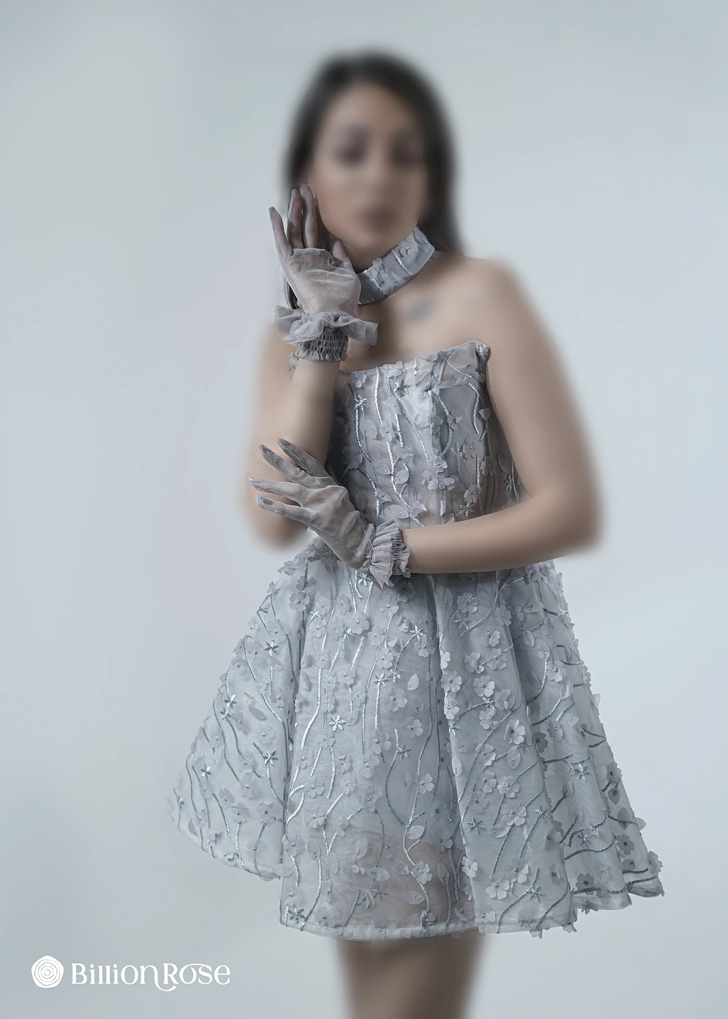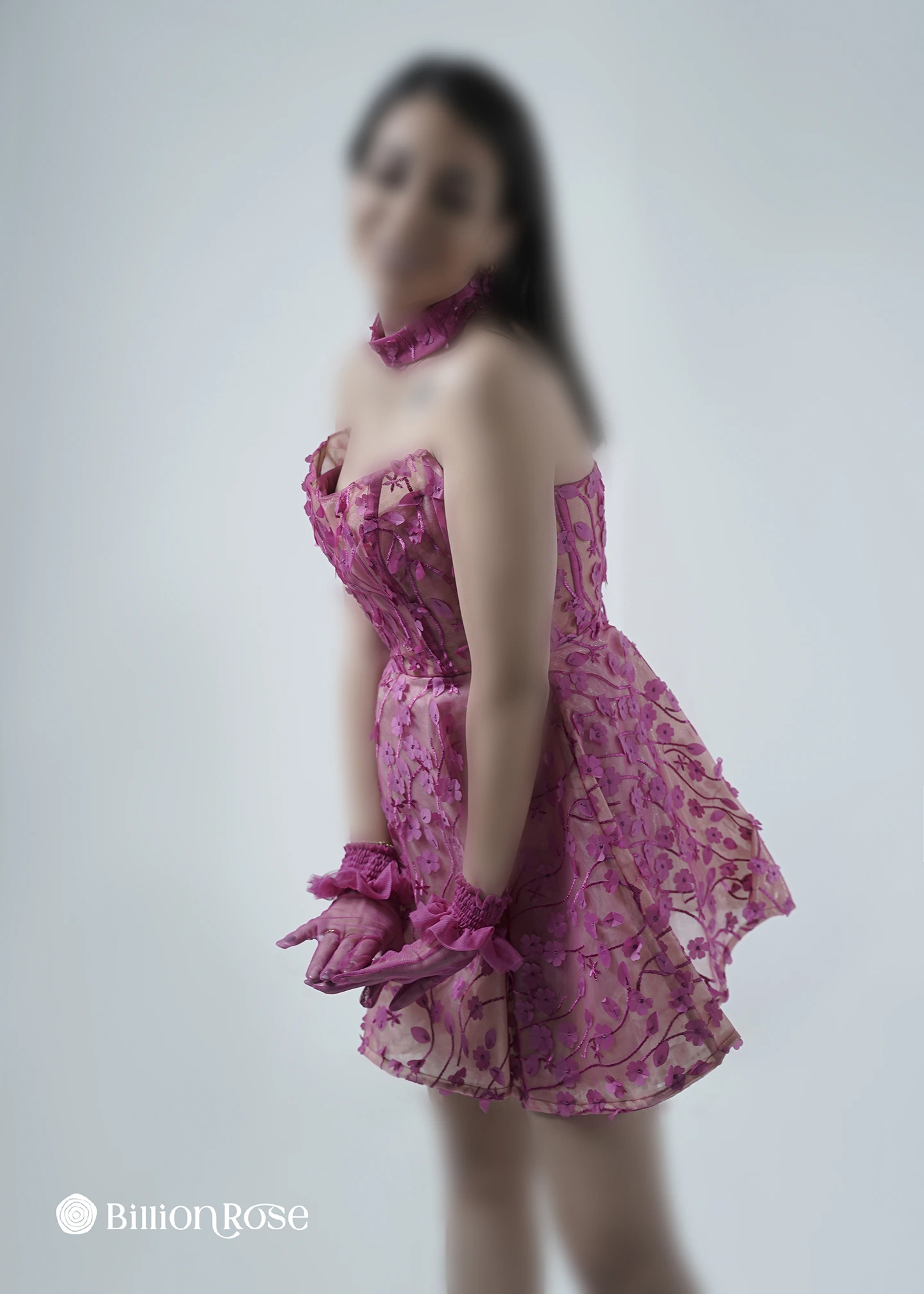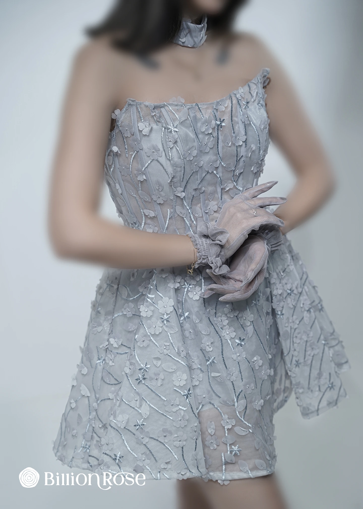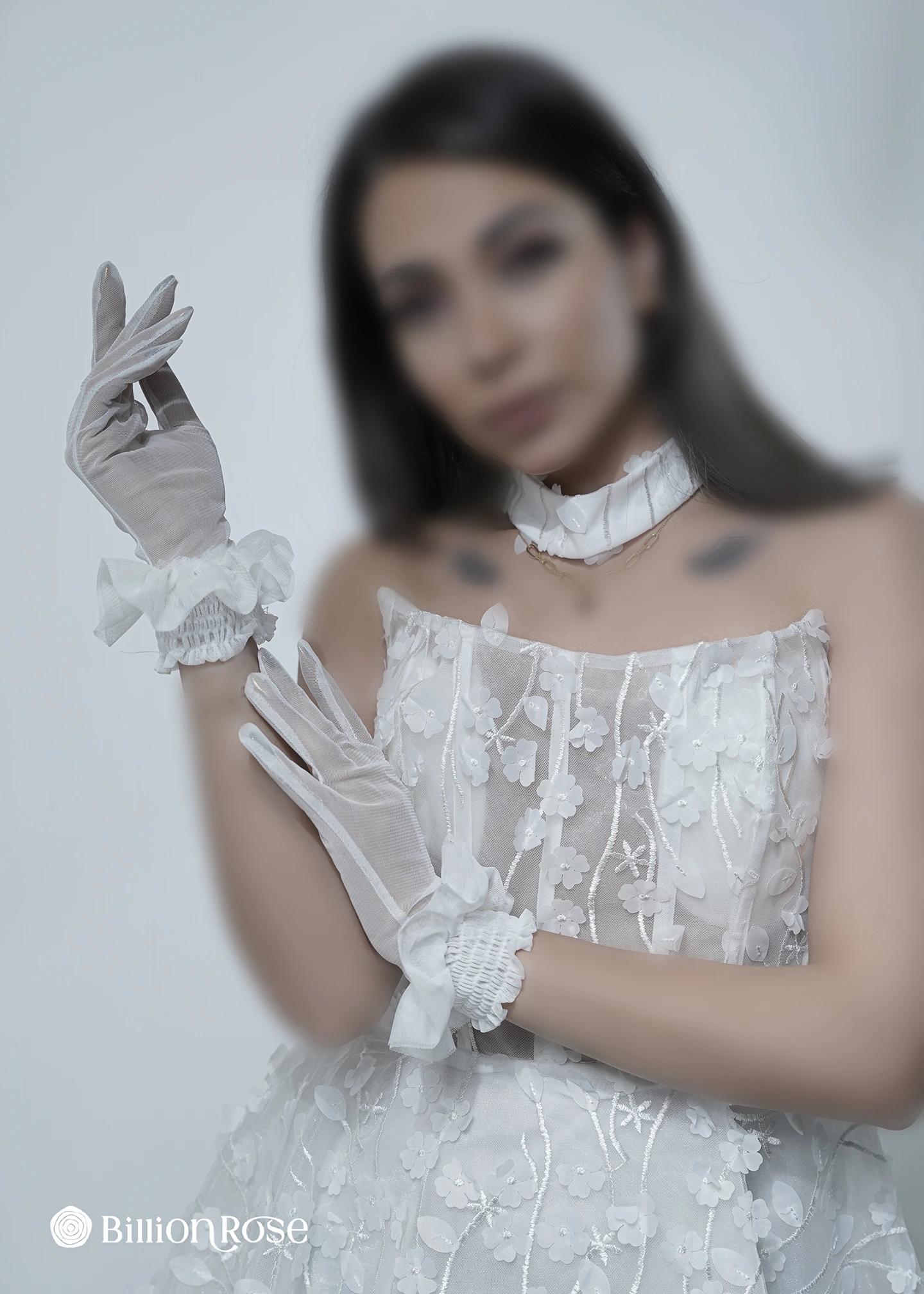 لباس کوتاه مجلسی با آستین پف دار مدل چین دار