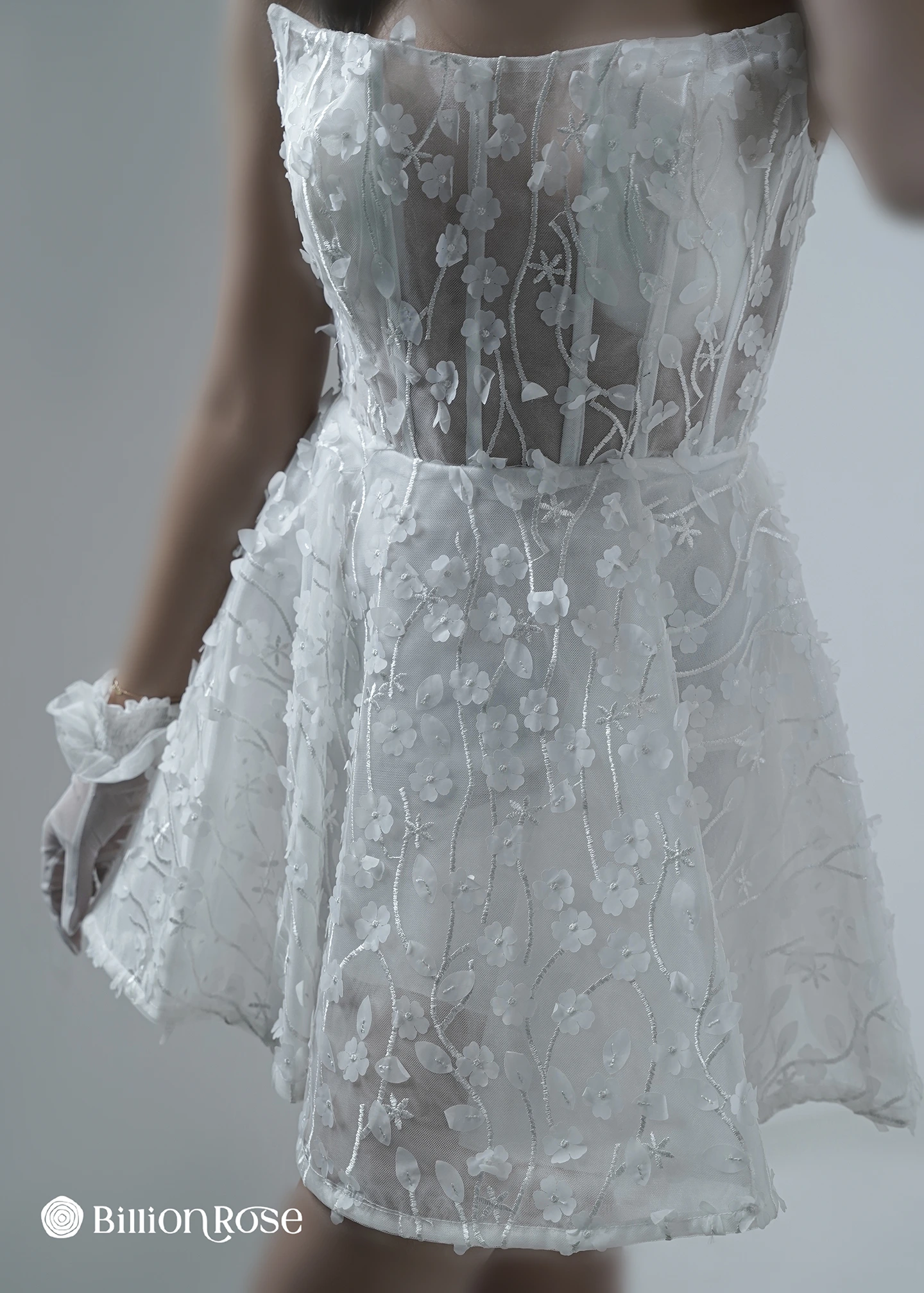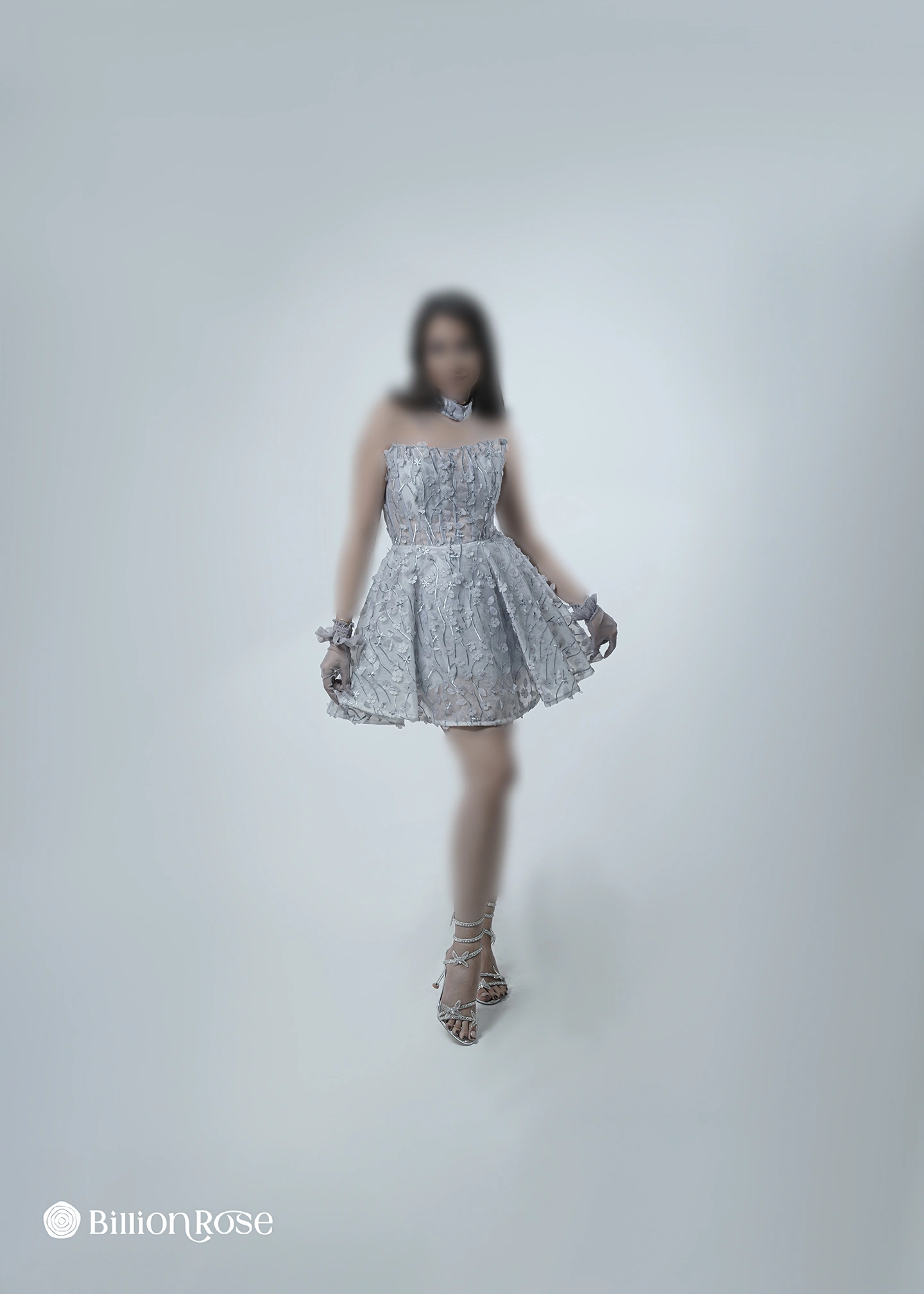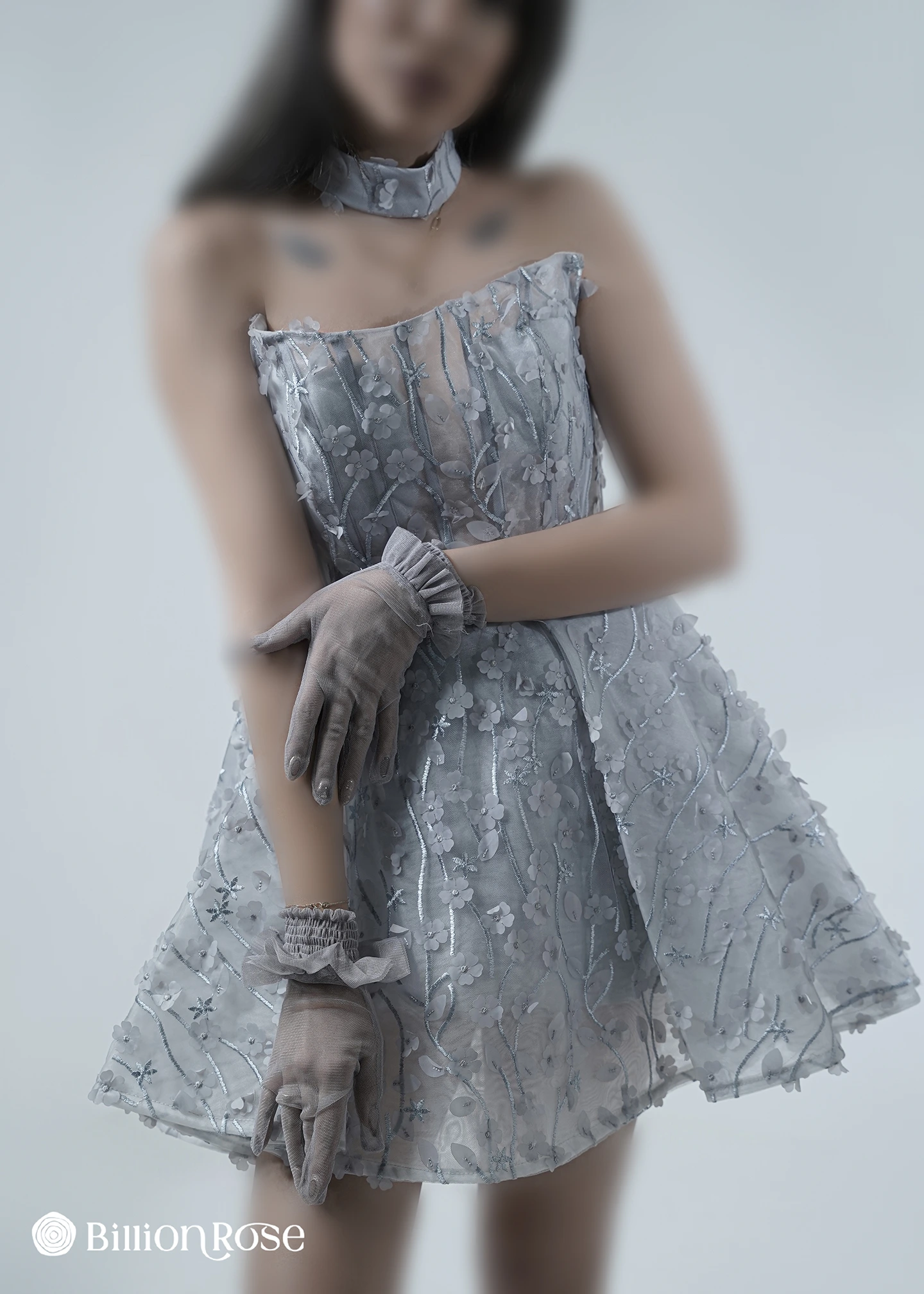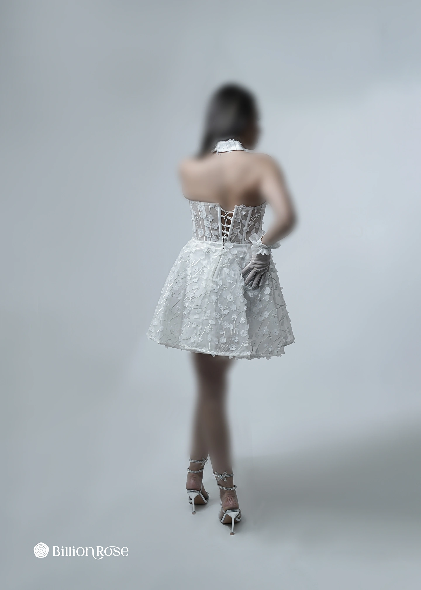 لباس کوتاه مجلسی با آستین پف دار مدل چین دار