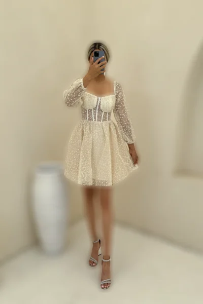 خانه » فروشگاه » مینی ( کوتاه ) » لباس کوتاه مجلسی با بالاتنه تور