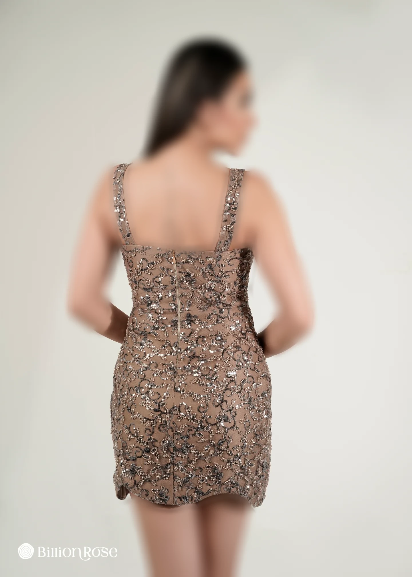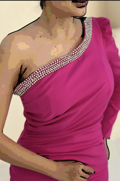 لباس کوتاه مجلسی تمام کار شده و سرشانه بندی