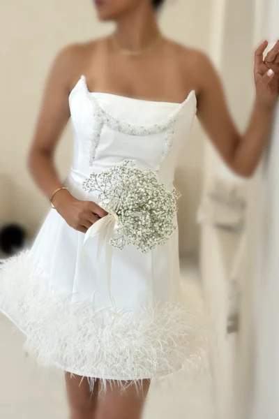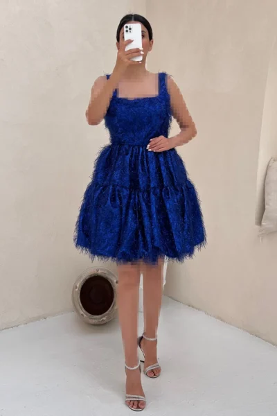 خانه » فروشگاه » مینی ( کوتاه ) » مینی‌ مجلسی یقه ایستاده تمام نگین‌دوزی