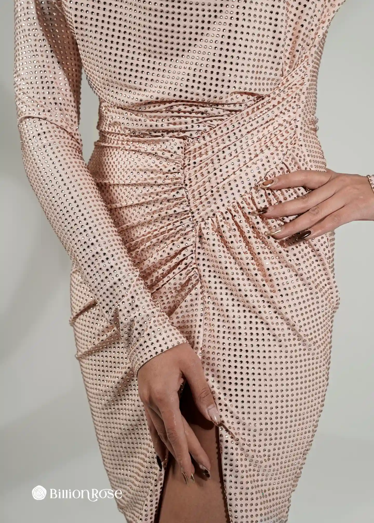 مینی‌ مجلسی یقه ایستاده تمام نگین‌دوزی
