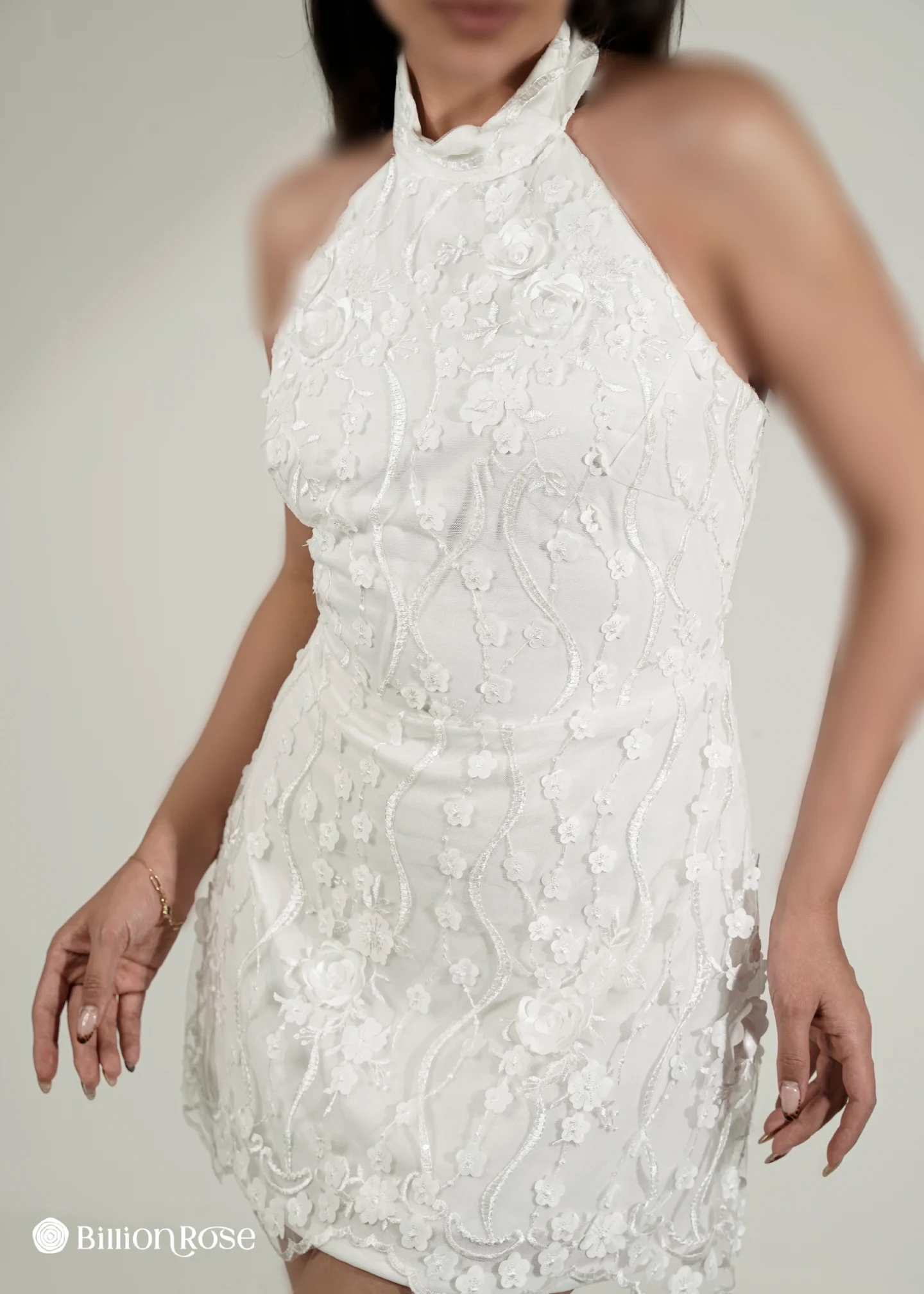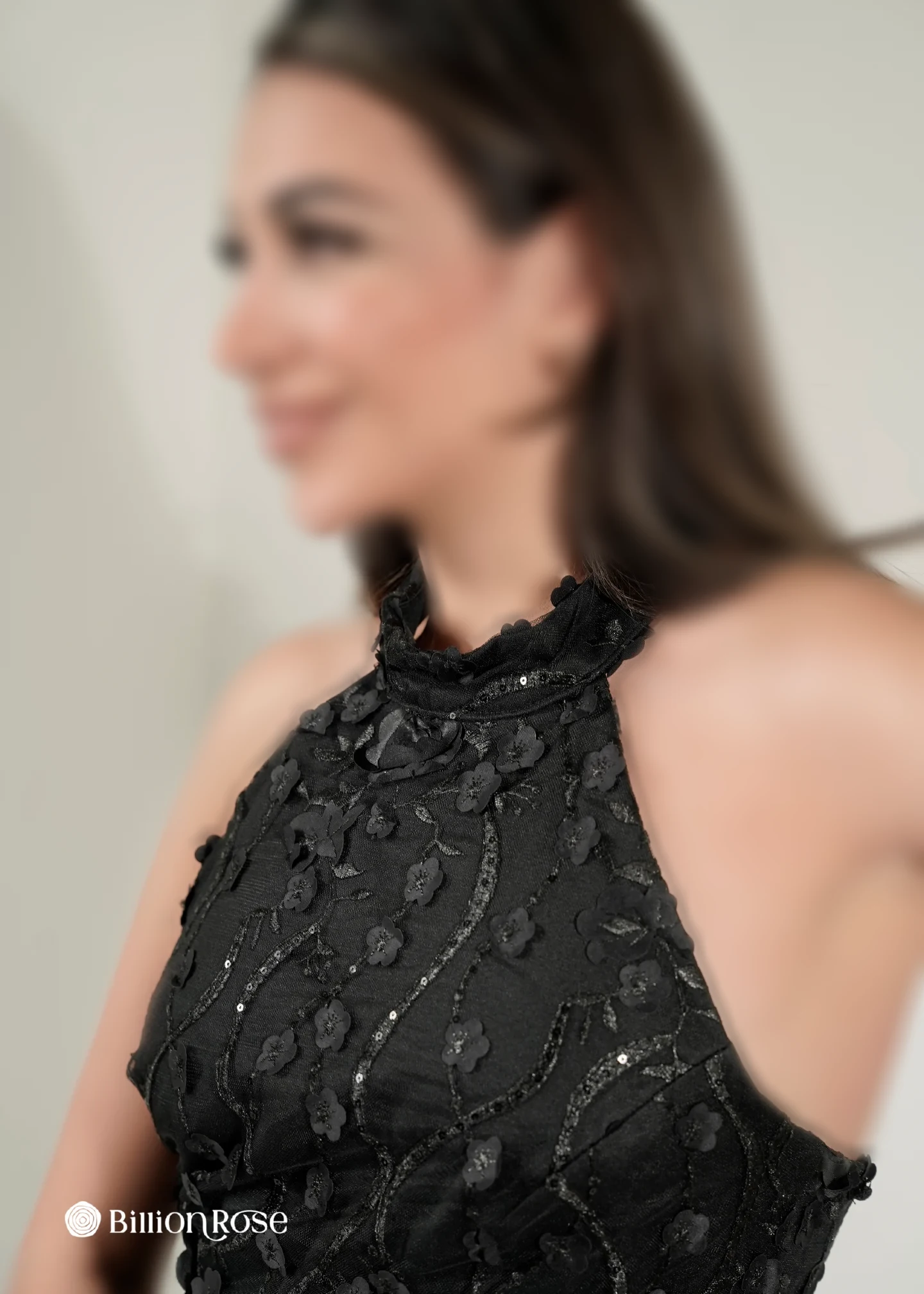مینی مجلسی یقه هالتر و طرح برجسته گل